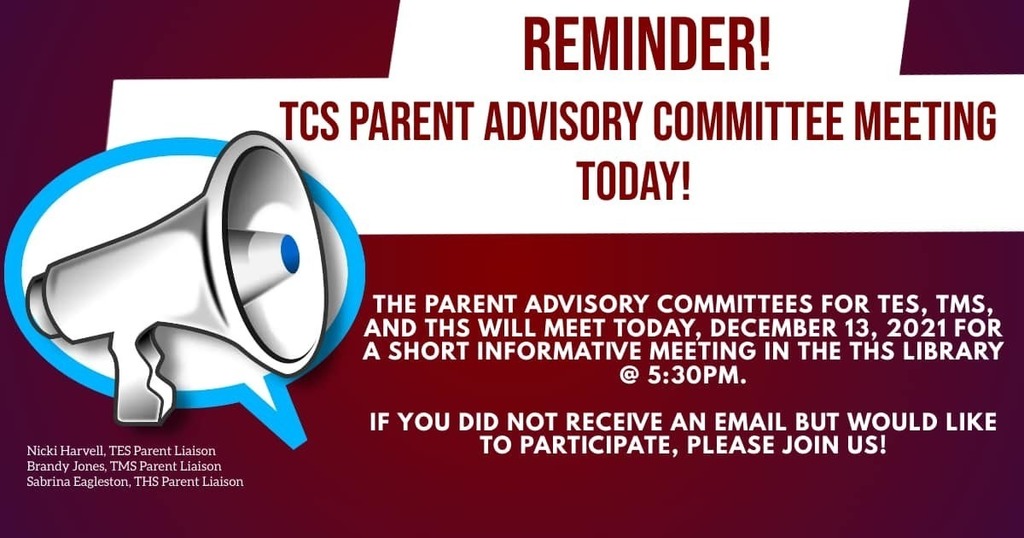 Due to the threat of severe weather, students will be released early on Wednesday, Dec. 14: 11:30 a.m. at TES; 11:45 a.m. at TMS/THS.